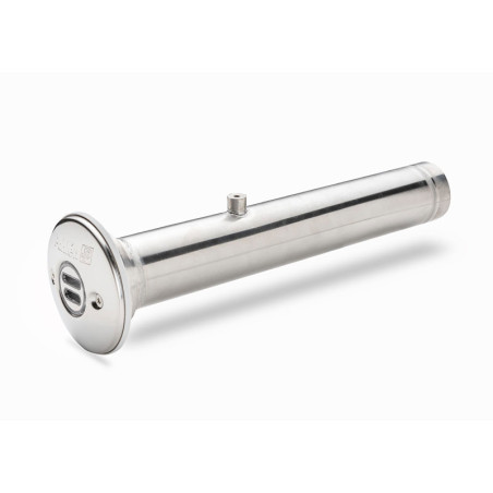 Inloppsmunstycket kommer med ett 350 mm långt ingjutningsrör med fäste för packningsats och inloppets front i ena änden, och 1½” invändig gänga i andra. Perfekt produkt för tjocka poolstommar då ingjutningsrör och fäste för fronten svetsats ihop till ett.