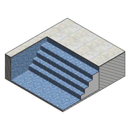 Inbyggd gaveltrappa eller hörntrappa klädd i samma liner som resten av poolen ger poolen ett lyxigt utseende. Gaveltrappan finns i fyra olika bredder och som hörnmodell.